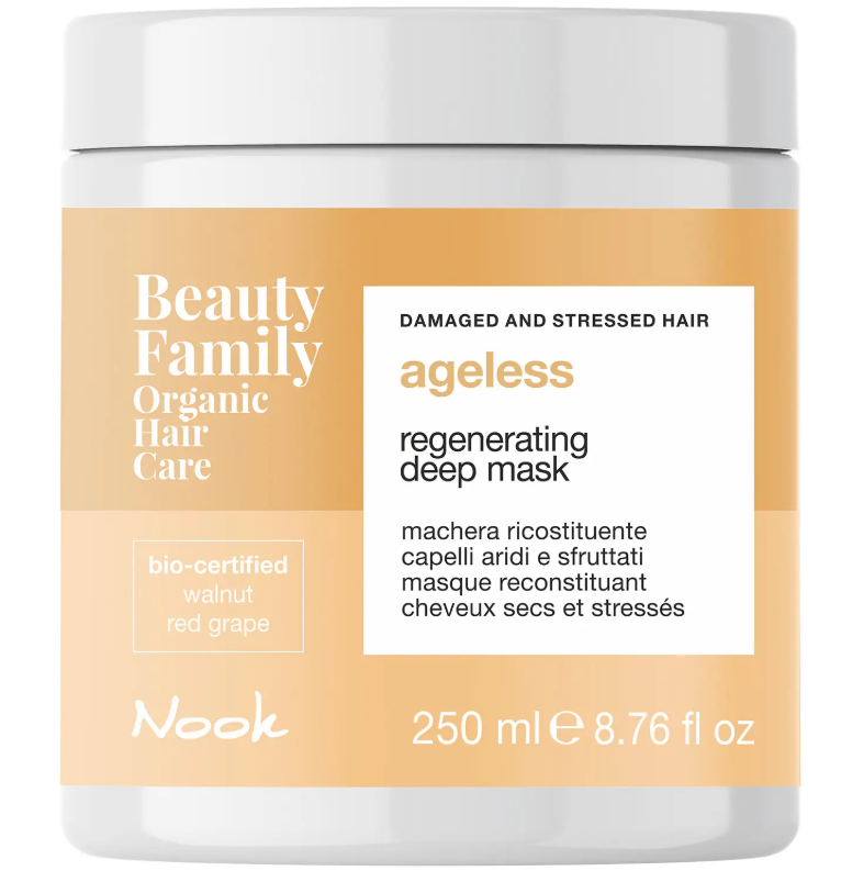 Линейка Ageless подходит для ухода за сухими, ломкими волосами, поврежденными термическим, механическим и химическим воздействием. Регенерирующая маска смягчает волосы, не утяжеляя их, придает блеск и эластичность.